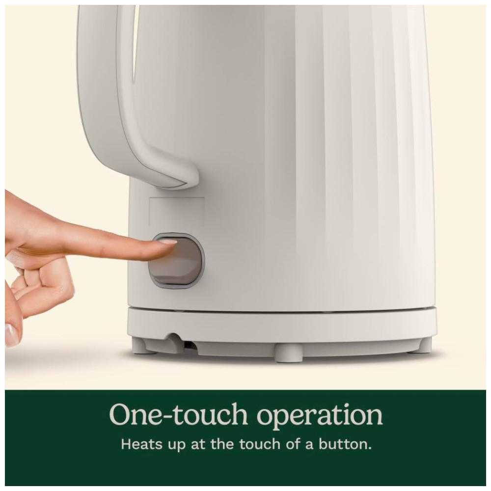 Com um simples toque de botão, a chaleira aquece rapidamente, proporcionando menos tempo de espera e mais momentos agradáveis com água fervente para chá, chocolate quente ou aveia instantânea.