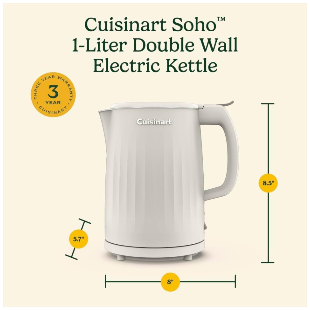 Chaleira Elétrica Cuisinart Soho 1 Litro de Parede Dupla: Prepare água quente em minutos para tornar suas rotinas matinais perfeitas com a Chaleira Elétrica de Parede Dupla Cuisinart Soho de 1 Litro.