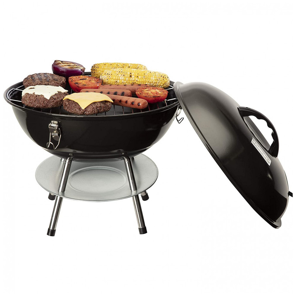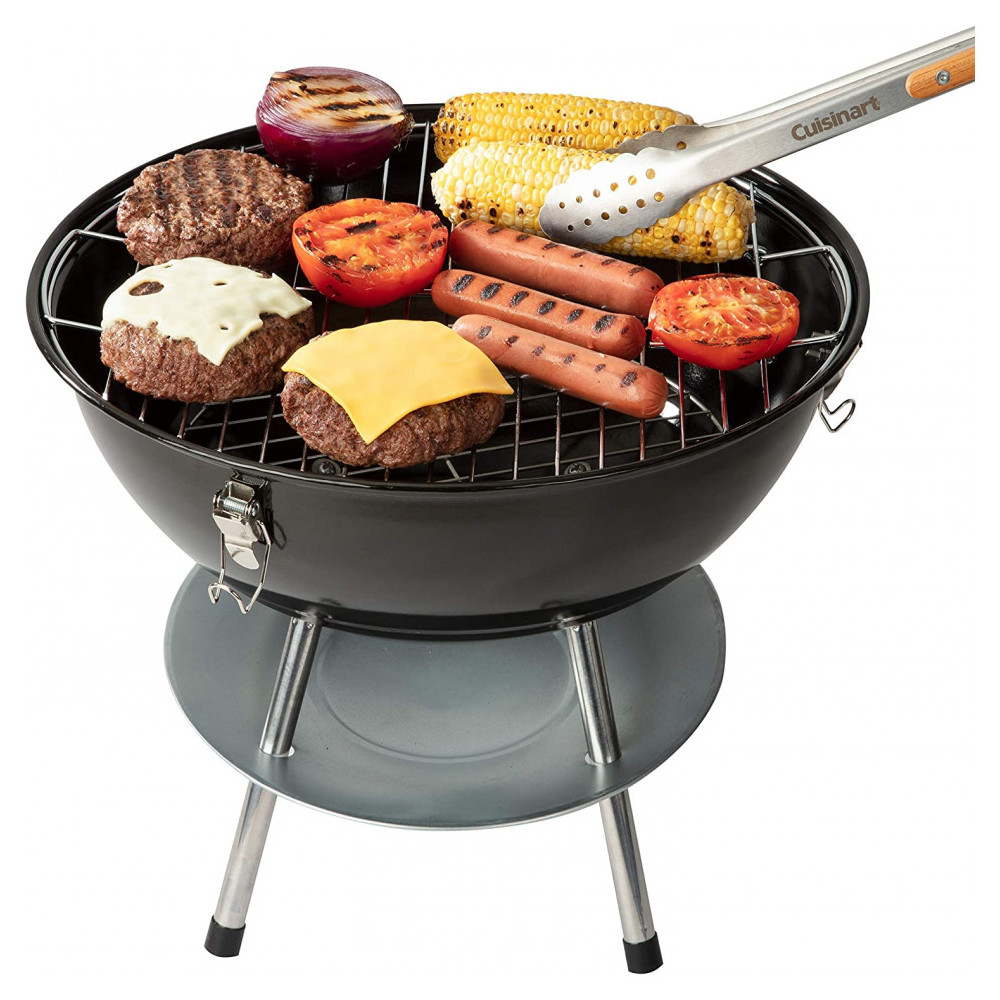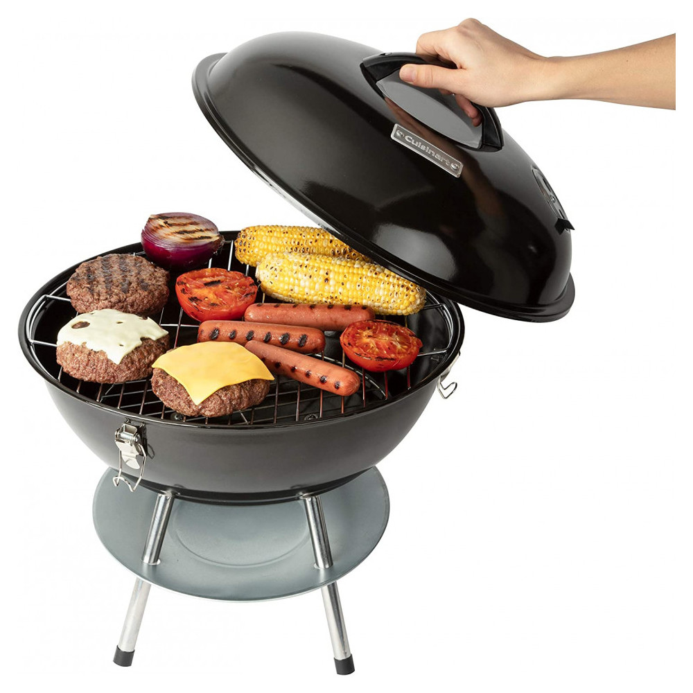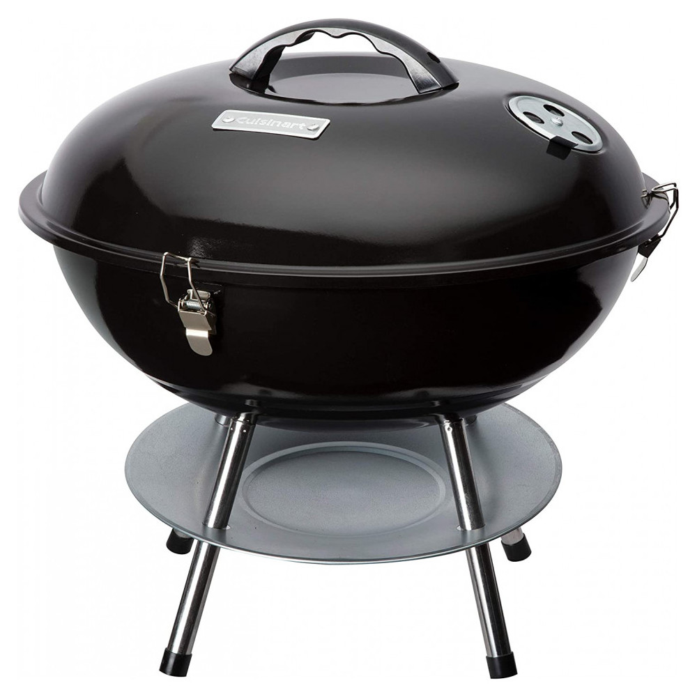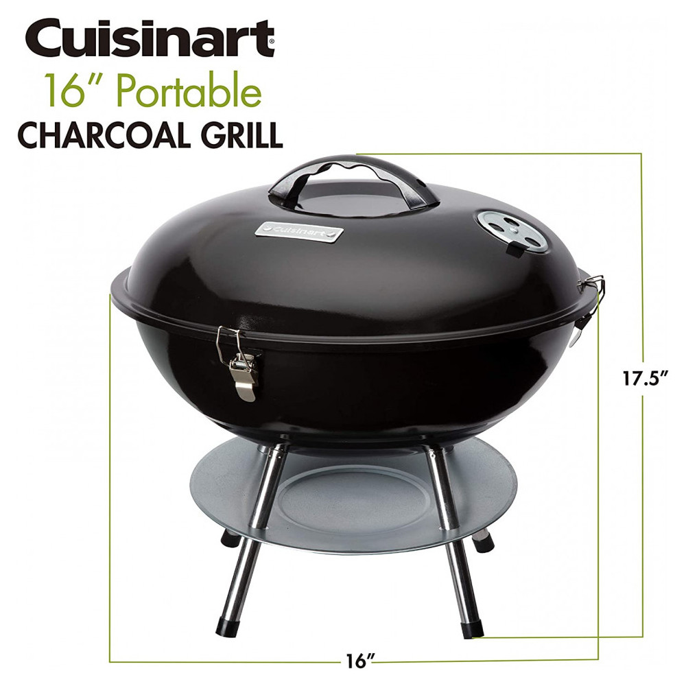 Churrasqueira a Carvão Portátil, Serve até 5 Pessoas, CUISINART CCG 216, Preto: GRELHA DE COZEDURA DE 200 POLEGADAS QUADRADAS A churrasqueira possui uma grelha de aço de 129 centímetros ao quadrado que é ideal para alimentar uma pequena multidão SISTEMA DE VENTILAÇÃO DUPLA O sistema de ventilação dupla permite o controle preciso da temperatura durante o cozimento TAMPA DE TRAVAMENTO O design da tampa de travamento torna a grade fácil de transportar quando for para sua próxima bagageira ou acampamento COLETOR DE CINZAS O coletor de cinzas ajuda a proteger a superfície sob sua churrasqueira de quaisquer pedaços de carvão quente que possam cair
