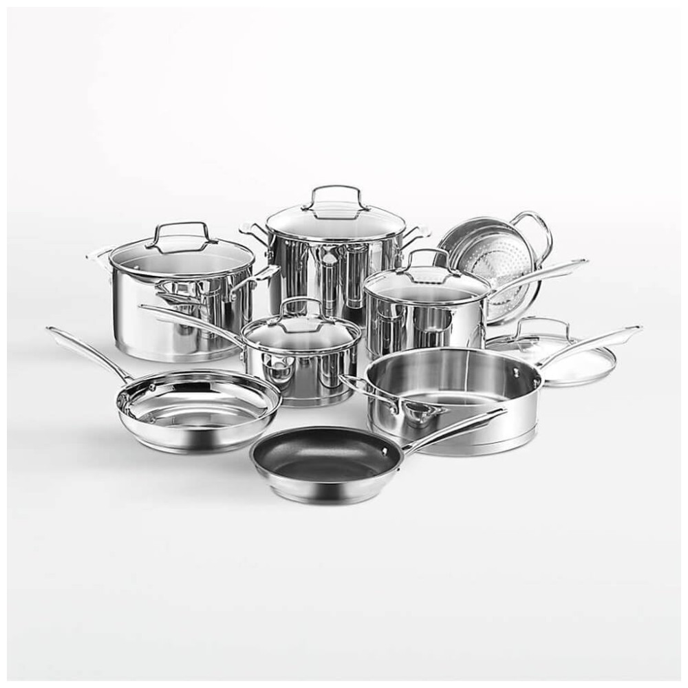 Conjunto de Panelas em Aço Inoxidável com Tampas de Vidro Temperado, 13 Peças, Cuisinart 77 13, Prata: Este conjunto é uma escolha perfeita para cozinheiros sérios, entusiastas do entretenimento e famílias numerosas.