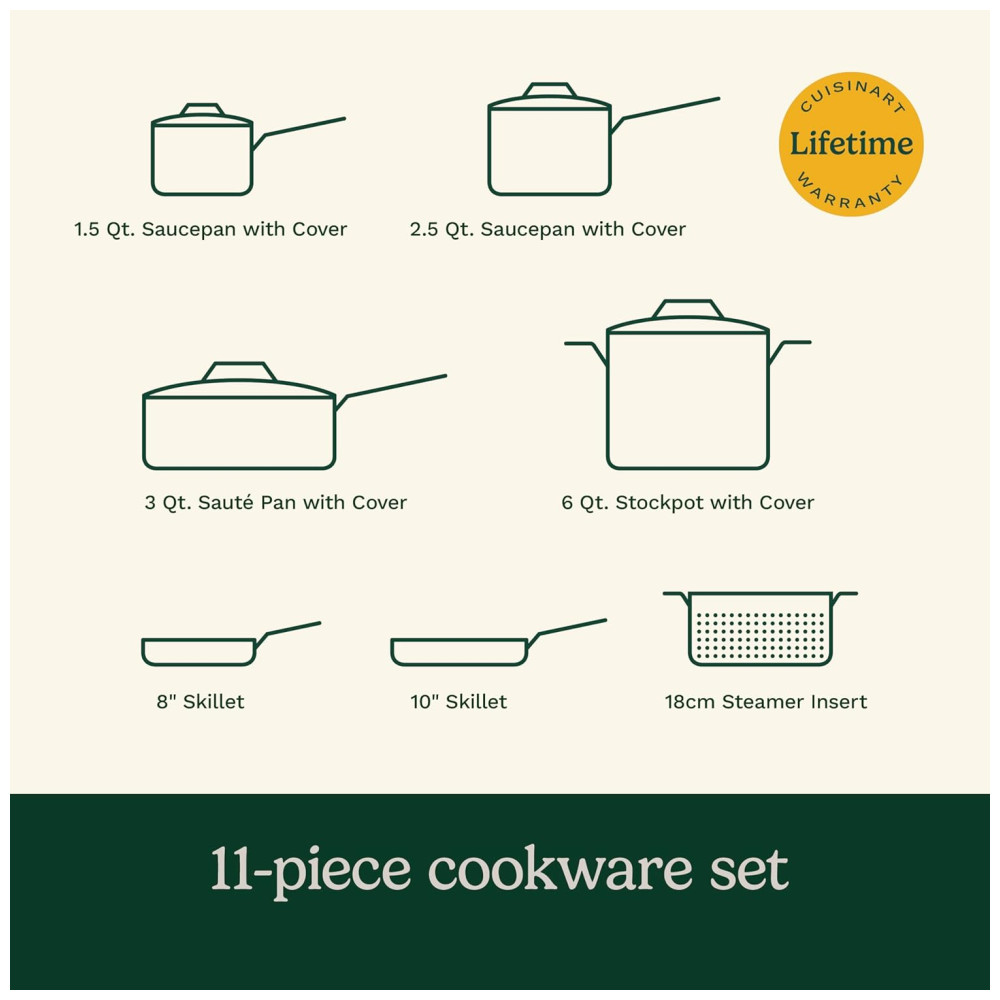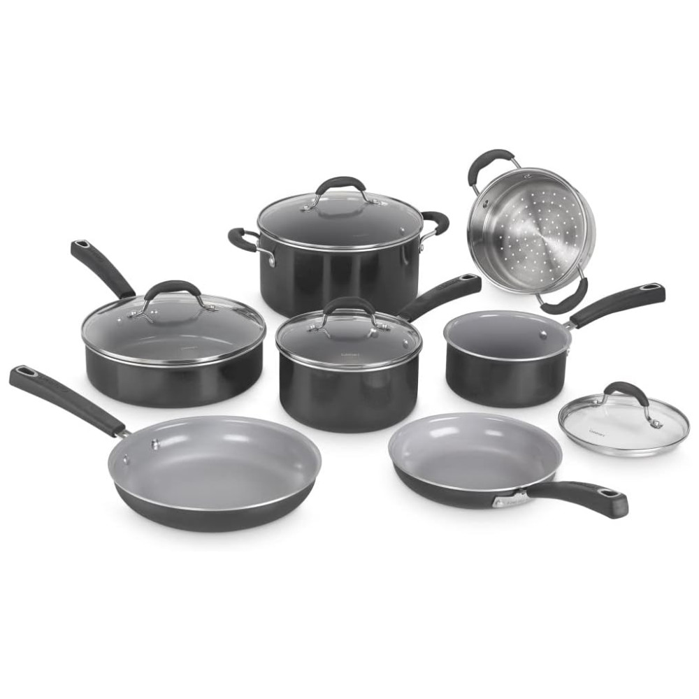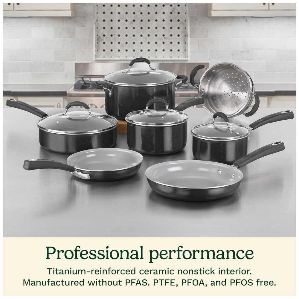 Jogo de Panelas com Interior Antiaderente Revestido de Cerâmica e Reforçado com Titânio, com 11 Peças, Cabo em Silicone e Tampas de Vidro, Cuisinart 733 30H, Preta