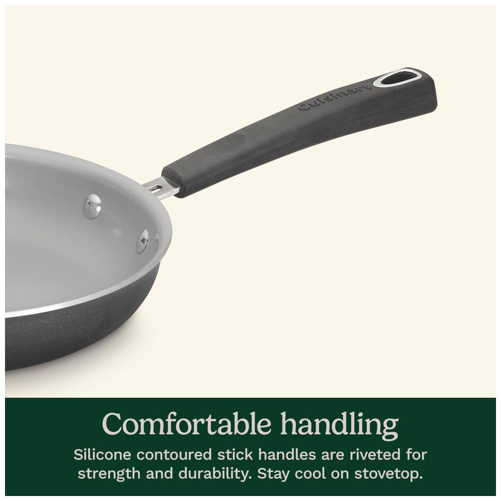 Jogo de Panelas com Interior Antiaderente Revestido de Cerâmica e Reforçado com Titânio, com 11 Peças, Cabo em Silicone e Tampas de Vidro, Cuisinart 733 30H, Preta: Este conjunto de panelas antiaderentes Cuisinart é perfeito para cozinhar uma ampla variedade de alimentos.