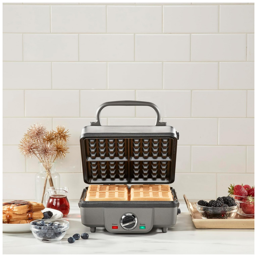 Máquina de fle Belga 4 Fatias 6 Configurações Aço Inoxidável, 110v, CUISINART WAF 300P1, Prateado: Prepare waffles grossos e macios e faça panquecas perfeitas.