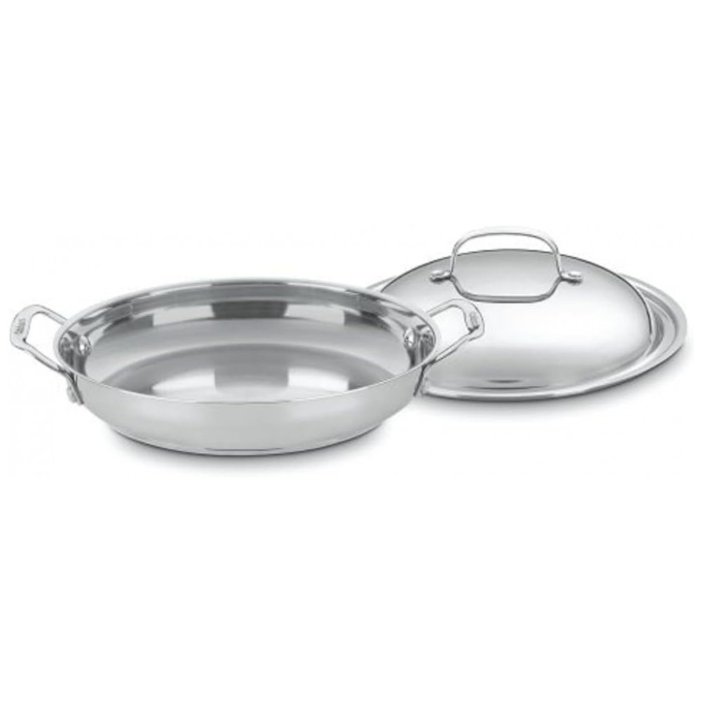 Panela Caçarola com Tampa em Aço Inoxidável, Cuisinart 725 30D: Local de um ano de 18, 10 de alta qualidade com marcas de meditação para atender às demandas culinárias de chefs gourmet em todos os lugares com uma base para indução.