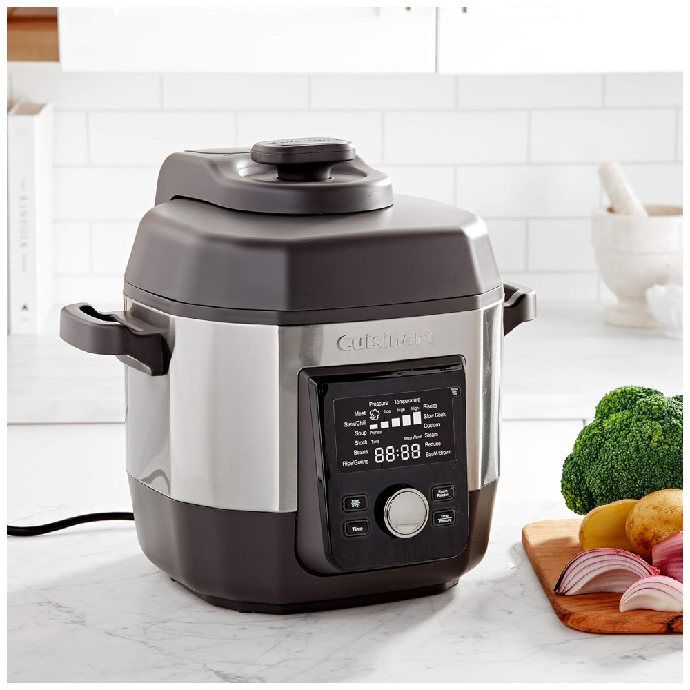 Panela de Pressão 12 em 1 Capacidade 5.6 L, 15 PSI, Aço Inoxidável, CUISINART CPC 900, Cinza