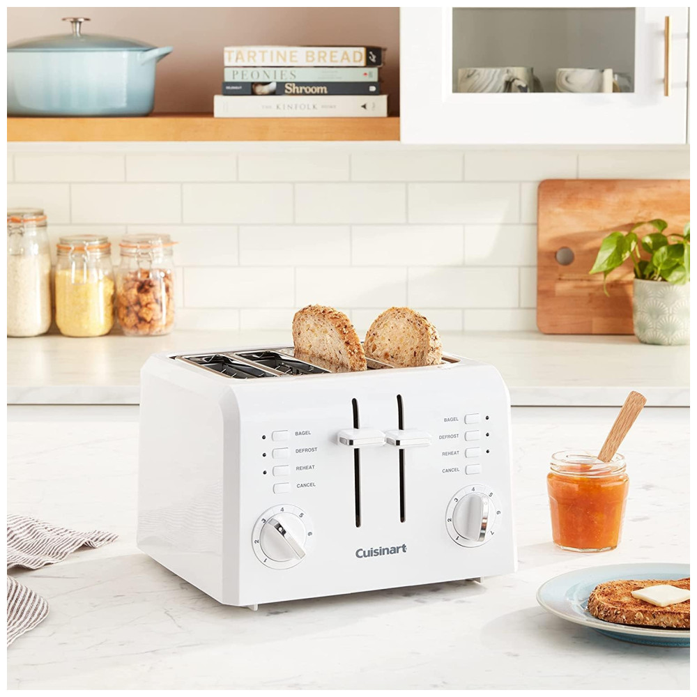 Torradeira, com 4 fatias, 900W, branca, 110v, CUISINART CPT 142P1, Branco: Design compacto com acentos de aço inoxidável.