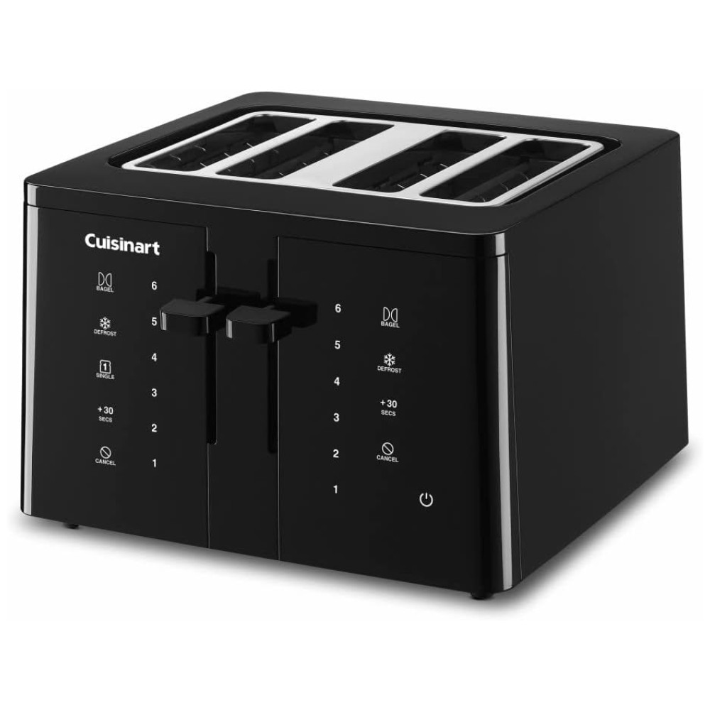 Torradeira Elétrica 4 Fatias com 6 Níveis de Tostagem e Tela LCD, 110v, CUISINART CPT T40, Preto: MÚLTIPLAS FUNÇÕES DE TOASTING Esta unidade inovadora possui funções versáteis de tostagem, como Toast, Bagel, Defrost, Reheat, Cancel e um controle de 30 segundos, garantindo que suas necessidades de tostagem sejam atendidas CONFIGURAÇÕES DO CONTROLE DE TOMADA DIGITAL O controle total do touchpad de 6 configurações oferece uma gama completa de opções de escurecimento para permitir a personalização perfeita de qualquer pedaço de pão.