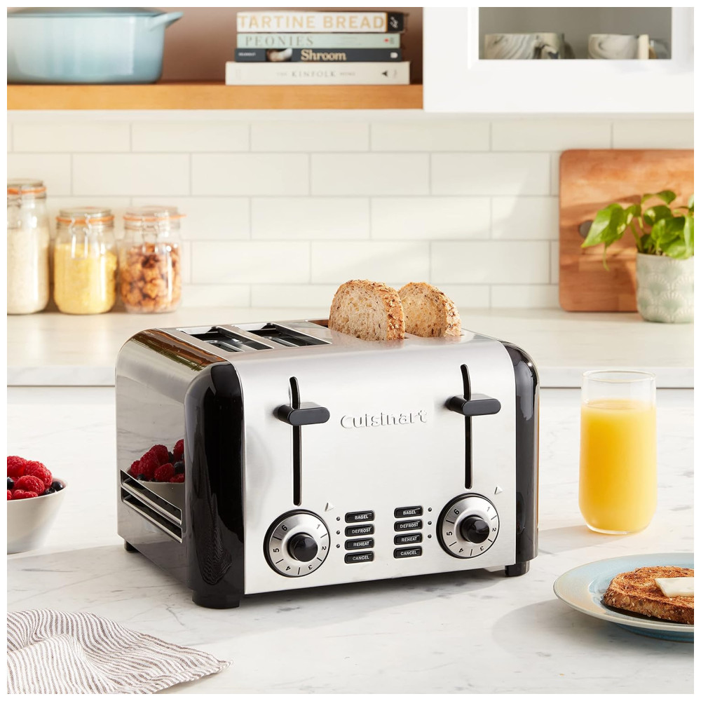 Descrição do produto A torradeira clássica de aço inoxidável recebe uma atualização moderna com esta torradeira de 4 fatias da Cuisinart.